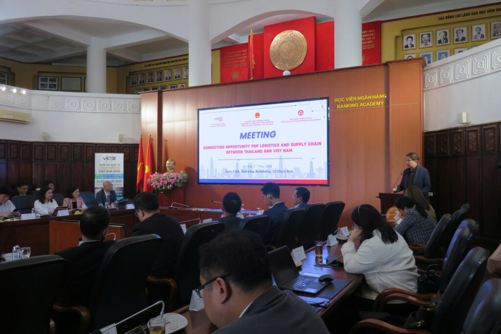 Sáng 05/5/2025, tại Học viện Ngân hàng, Hiệp hội Phát triển nhân lực Logistics Việt Nam (VALOMA) tổ chức buổi gặp mặt và làm việc với đoàn doanh nghiệp sản xuất và logistics Thái Lan nhằm xúc tiến, thúc đẩy các hoạt động hợp tác trong lĩnh vực logistics và chuỗi cung ứng giữa hai nước.