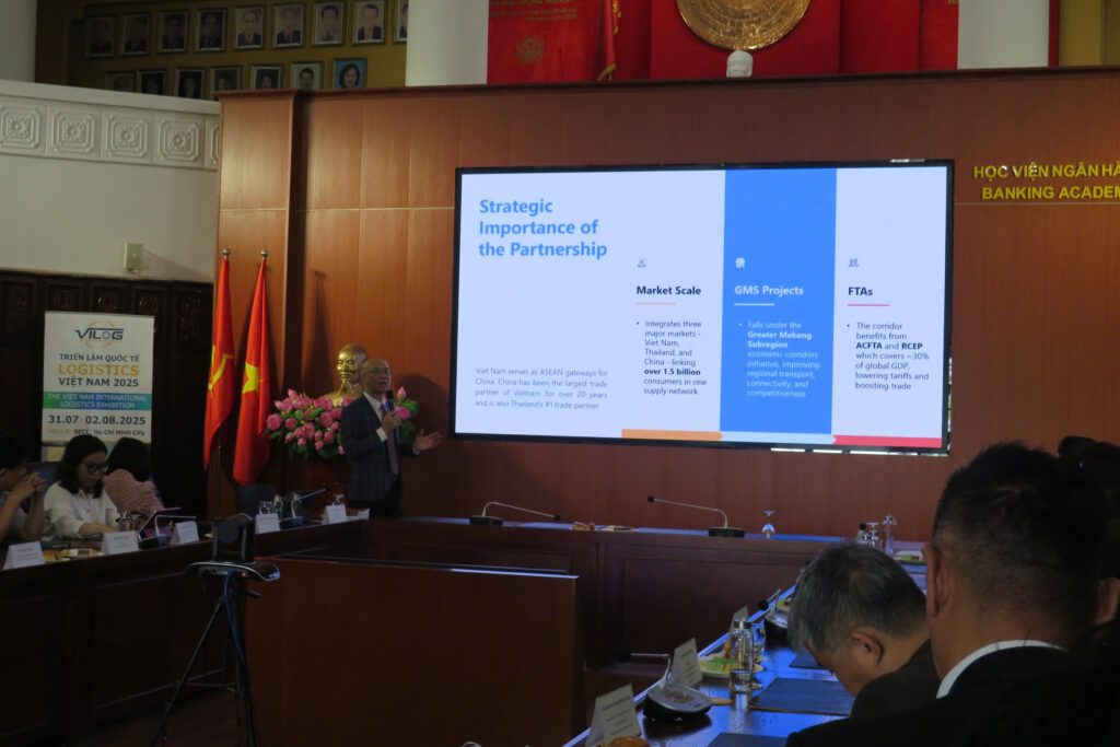 Phó Chủ tịch FTI nhấn mạnh, logistics ngày càng đóng vai trò quan trọng, đặc biệt trong bối cảnh các rào cản thương mại toàn cầu hiện nay. Cách tốt nhất các nước cần xích lại gần nhau hơn. Thái Lan, Việt Nam và những quốc gia khác trong Hiệp hội các Quốc gia Đông Nam Á (ASEAN) hay Các nước Tiểu vùng sông Mê kông mở rộng (GMS) cần tăng cường hợp tác, kết nối với nhau để cùng ứng phó và vượt qua những thách thức, biến động của thương mại toàn cầu.